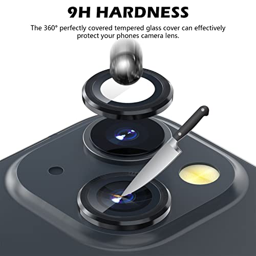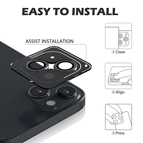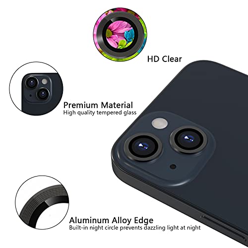 imluckies Camera Lens Protector Compatible with iPhone 13/13mini, Premium Tempered Glass Circle Film, Aluminum Alloy Full Fit Lens Ring Cover, Black [Anti-Scratch] (2 Pack)