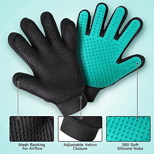 ✅Hair Remover: Perfect for long, short and curly haired dogs, cats, horses, and other pets, grooming the hair quickly, gently and effectively; The shedding hair sticks to the glove, making it easy to peel and throw hair away
