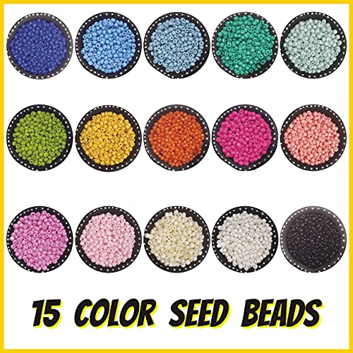 INDIKONB 7500 Pc – 28 in 1 Jewelry Making Set for Girls and Women (includes Opaque Neon Multicolour 8/0 3mm Glass Seed Beads)
