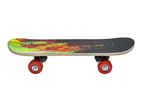 Inditradition Wooden Skateboard for Kids (Ideal for 3 to 8 Years Kids), 7 Layer Sturdy Deck, 17 x 5 Inches, Multicolour & Design (Pack of 1)