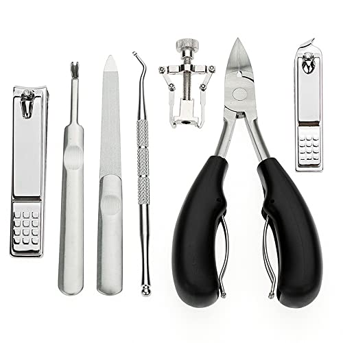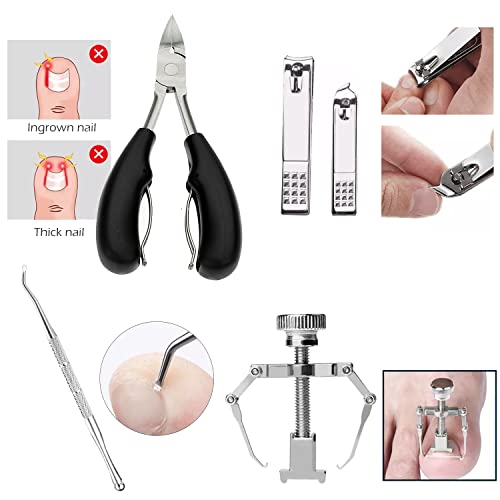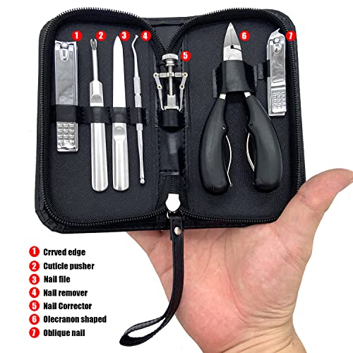 Ingrown Toenail Clipper Kit (7PCS), Thick Nail Toenail Care Tools, Stainless Steel Pedicure Tools Include Nail Lifter Nail Corrector with PU leather Bag