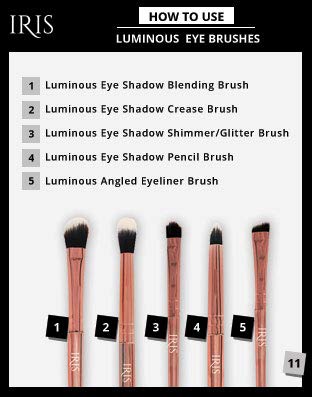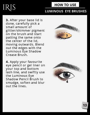 IRIS Luminous Eyes brush set is a combination of all the essential eye brushes for a multitude of looks. With these excellent brushes, apply, blend and contour all kinds of eye shadows – from seriously smoky eyes to full-fledged masterpieces! All the tools are of world-class quality and are ergonomically designed with firmly packed, dense bristles that work perfectly well for liquid, powder, and cream-based products. The brushes come in a sleek compact pouch for hassle-free use while you’re on the go. Luminous Eye Shadow Blending Brush, Luminous Eye Shadow Crease Brush, Luminous Eye Shadow Flat Shader Brush, Luminous Eye Shadow Pencil Brush, Luminous Eye Shadow Angled Brush