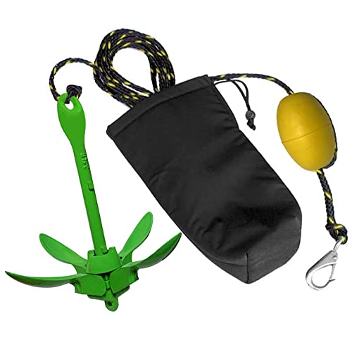 ISURE MARINE Kayak Anchor Kits Portable Folding Anchor Buoy Kit Canoe Kayak Raft Boat Sailboat Fishing 3.5 lbs Marine Rope Complete Folding Grapnel Anchor Kit for Kayaks, Small Boats, Jet Ski etc