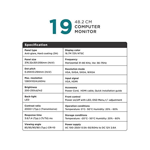 Shop wide range of collection of Monitor from the house of iVOOMi on Amazon. 19 Inch (48.2 cm) LED 1280 x 1024 pixel Monitor with a 60 HZ refresh rate. Monitor comes with 1 Year Manufacturer Warranty.