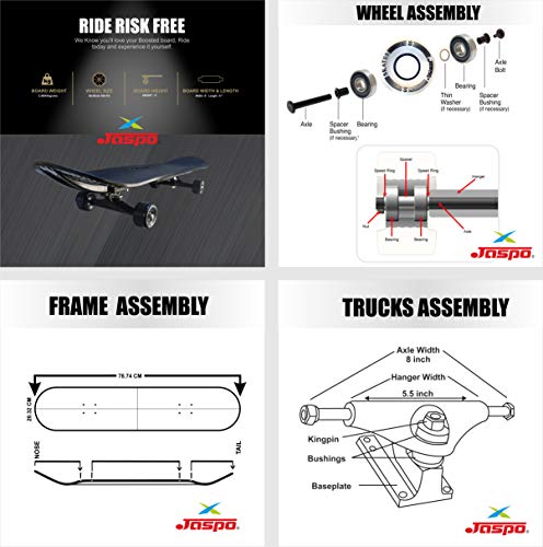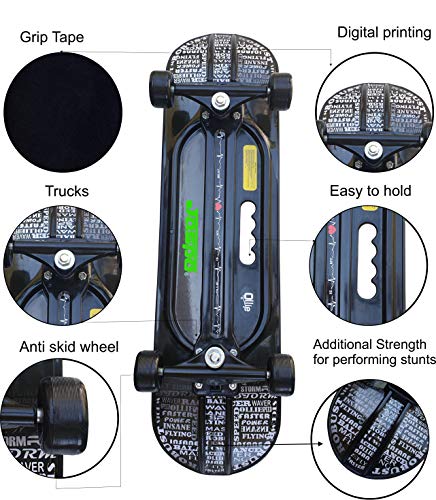Jaspo Hurricane Ollie 31 x 8 Fibre Skateboards Appropriate for Beginners & Learners of All Age Group with 80 Grit Grip Tape on Front Side & Attractive Sticker Graphics on Back Side
