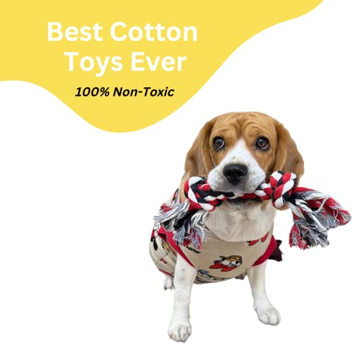 Knotted rope toy- It is a very hygienic, non toxic, and washable Handmade with love rope toy as it is made with natural fabric. While chewing the hard gripped knots, the pet releases its stress and over-equipped energy.