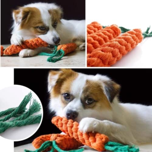 Rope carrot Toy – This strong chew carrot toy helps in dental cleaning, exercise jaw, prevents tartar and plaque buildup, exercise jaws clean up dirt hidden in dogs teeth. Texture and Colours on the ball adds interest for pets and massages their gums.
