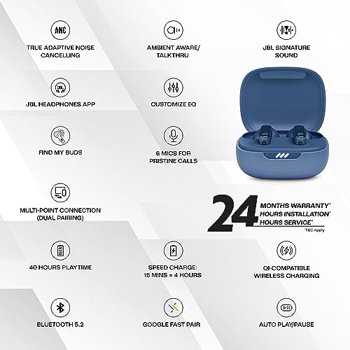 JBL Live Pro 2 Premium in Ear Wireless TWS Earbuds, ANC Earbuds, 40Hr Playtime, Dual Connect, Customized Bass with Headphones App, 6 Mics for Clear Calls, Wireless Charging, Alexa Built-in (Blue)