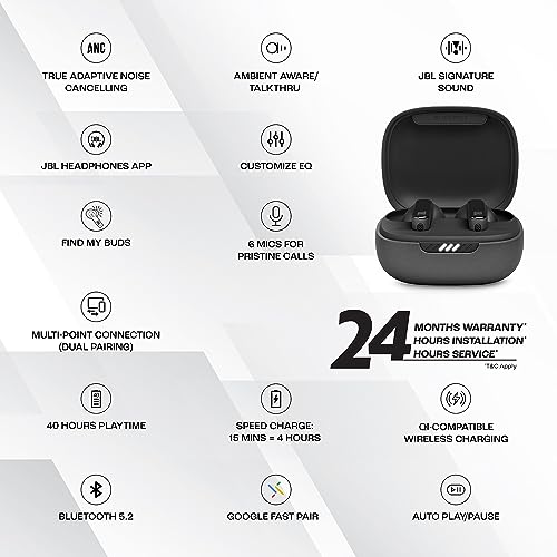 JBL Live Pro 2 True Wireless in Ear Earbuds ANC Earbuds | Upto 40Hrs Playtime | Adjust EQ for Extra Bass | 6 Mics for Crystal Clear Calls | Dual Pairing | Qi Compatible | Built-in Alexa (Black)