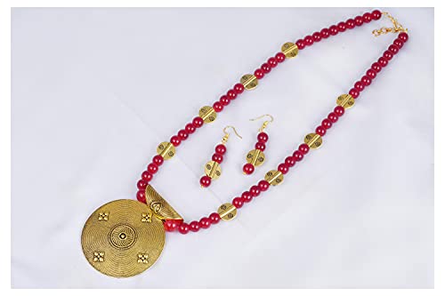 Necklace Size: Necklace Length: 12 Inch with Adjustable loop, Pendant Length: 6.5 cm Width:5.8 cm Necklace Weight: 74 grams, Earring Size: Height: 5 cm. Width: 0.5 cm. Total Weight: 80 grams.