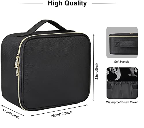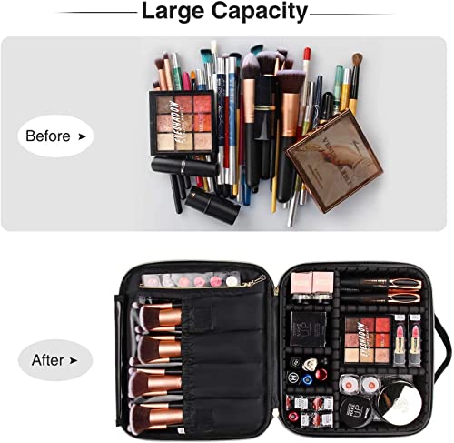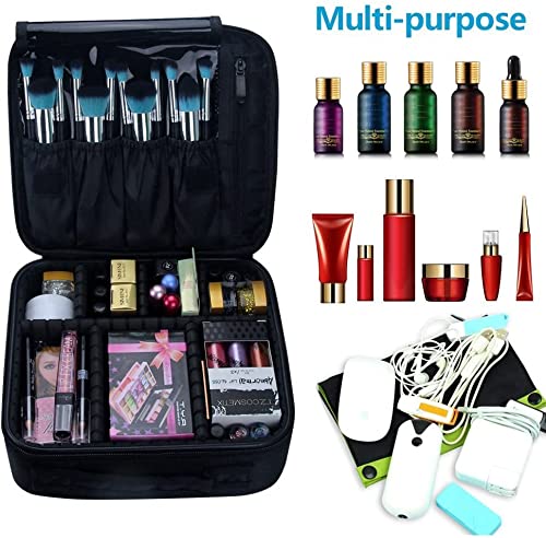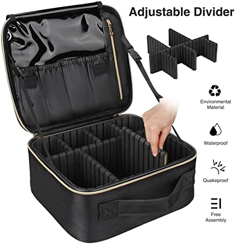 JIALTO Professional Makeup Train Case Cosmetic Toiletry Bag Travel Organizer Make up Artist Master Waterproof Case Portable Storage with Adjustable Dividers Accessories Tools Brushes Pouch(Black)