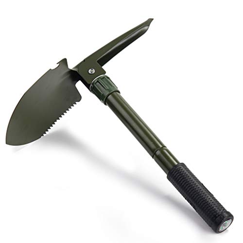 This multi-use shovel allows you to have all in one product pickaxe, shovel, compass and saw. The small compact size free you