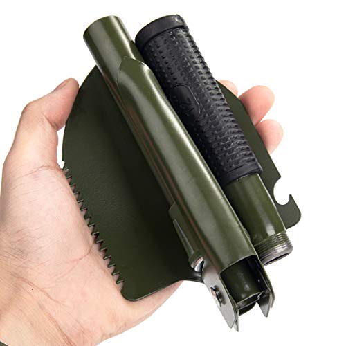 Jipemtra Military Folding Shovel, Camping Shovel Survival Gear Entrenching Tool with Carrying Pouch Metal Handle for Camping Trekking Gardening Fishing Backpacking Great for Kids to Play (Green S)