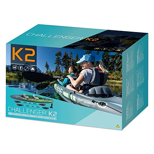 The Challenger K2 Kayak is sporty and fun with a streamlined design for easy paddling. The bright green color and sporty graphics make the kayak highly visible in the water. Great for experiencing lakes and mild rivers solo, this Sports Series kayak is perfect for two adults. Lightweight and compact, this kayak is very easy to assemble and, with the Boston valve, it inflates and deflates in minutes. You can take the fun of kayaking wherever you go.