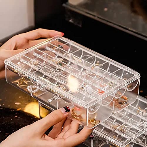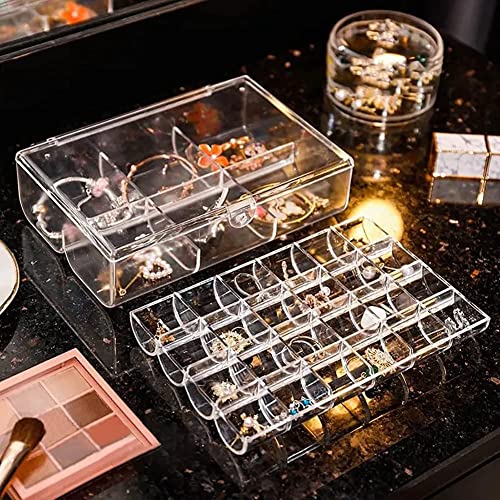 JULEX 2 Layer Jewelry Storage Box With Lid Rings Earrings Necklace Holder Acrylic Case Classified Jewelry Organizer for Women Girls Dustproof, Transparent