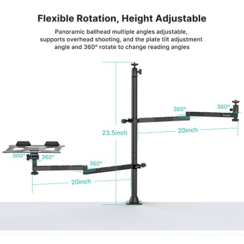 This camera desktop video stand suitable for baking, crafting, online lesson, document display, live stream broadcast, video recording and even creating top-down video/photo scenes.