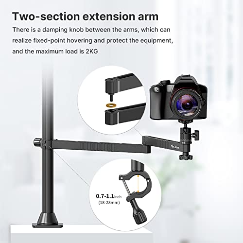 JUSMO LS22 Desk Camera Mount, Desktop Overhead Camera Stand Aluminum Flexible Articulating Arm for Photo Video Record Streaming Setup, Table Clamp Camera Mount for DSLR/Light/Tablet/Laptop