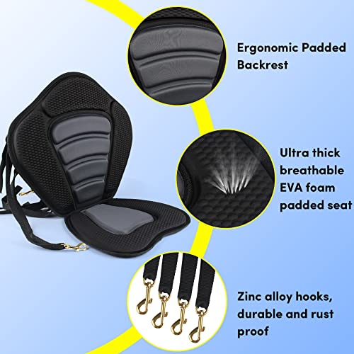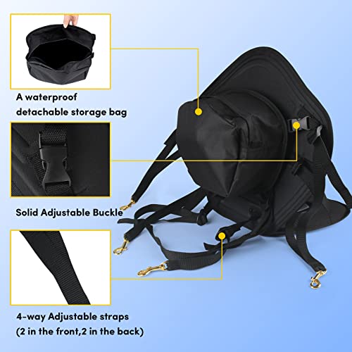 Kayak Seat Padded,Kayak Seat with Back Support,Canoe Boat Backrest Seats With 4 Adjustable Straps,Include Detachable Back Storage Bag, Great for Kayaking SUP Paddle Board -1Pack Black