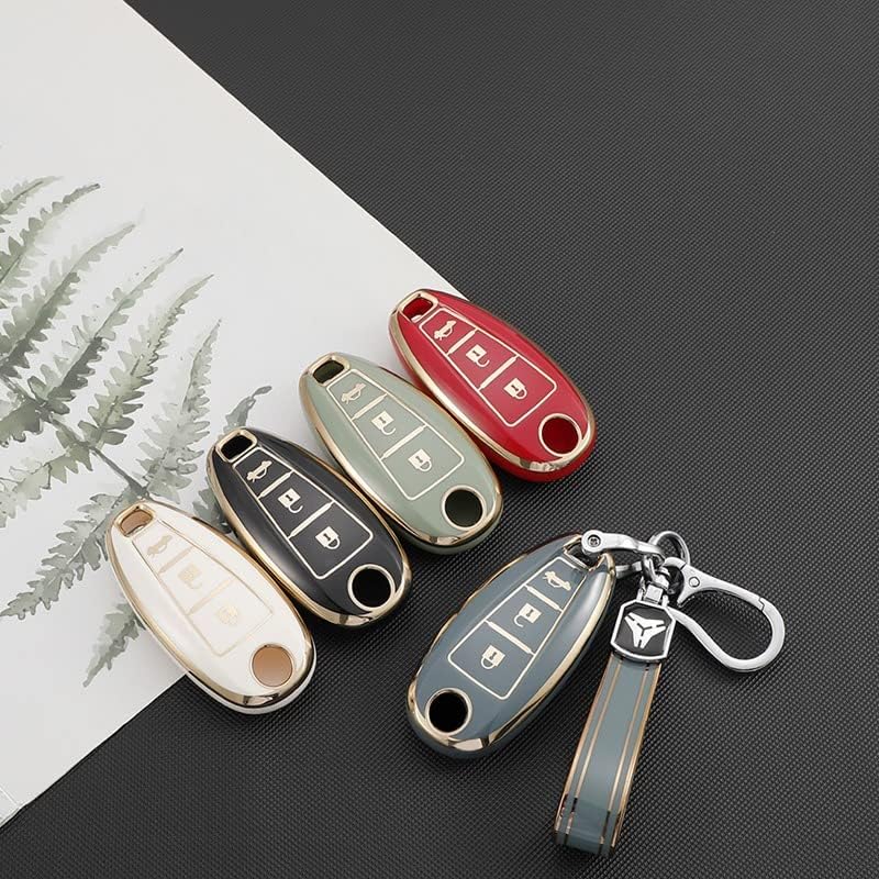 KE Products Gold Border TPU Key Cover Compatible with Maruti Suzuki 2 and 3 Button Baleno Ciaz Vitara Brezza S Cross Swift Ignis and Toyota Urban Cruiser Smart Key (Black)