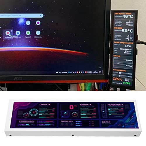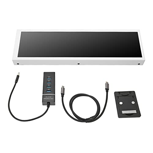 1. 360 Degree Rotation: PC sensor panel display supports horizontal and vertical screen switching, 360 degree rotation, adjustable screen brightness, related machine automatic screen rest function, energy saving and environmental protection, equipped with display stand. 2. DIY Theme: Customizable screen layout, built in a variety of themes to choose from, you can change the background image or switch themes with one click, you can easily realize your creativity, DIY design your own theme. 3. 1920×480 Resolution: Extended display, USB C connection display with 4 ports USB3.0 HUB, extended display desktop, 8.8 inches, 1920×480 resolution, 60HZ refreshness rate, play music, watch TV series, browse live. 4. Multifunction: CPU temperature monitor with for AIDA64, precise cutout design does not cover the port. Not only can display CPU, GPU, RAM usage and temperature, but also can display internet speed, date, time, volume, weather forecast, etc. 5. Multi System Support: Support for Raspberry Pi, for Linux, for Windows, USB C direct connection display, no HD Multimedia Interface, power cable, etc., perfect for your host, real time all round understanding of your host status. Spec: Item Type: 8.8in Computer Temp Monitor Material: Aluminum Alloy, LCD Product Size: Approx. 235 x 68 x 18mm / 9.3 x 2.7 x 0.7in Screen Size: 8.8in Resolution: 1920×480 60Hz Viewing Angle: IPS Full View Interface: USB C System: Support for Raspberry Pi, for Linux, for Windows How to Use: Take out the product and use it Package List: 1 x Computer Temp Monitor 1 x USB Cable 1 x Stand 1 x HUB