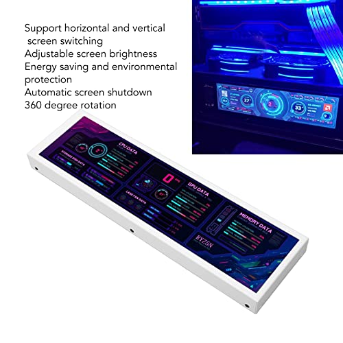 Ketsicart PC Temp Monitor, 360 Degree Rotation 8.8in IPS CPU Temperature Monitor Energy Saving DIY Theme Multifunction Adjustable Brightness for Desktop PC (White)