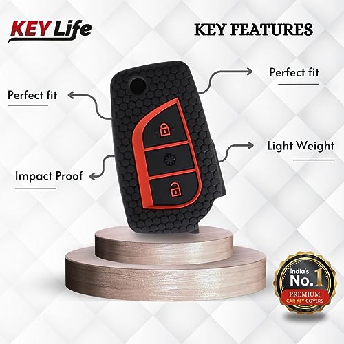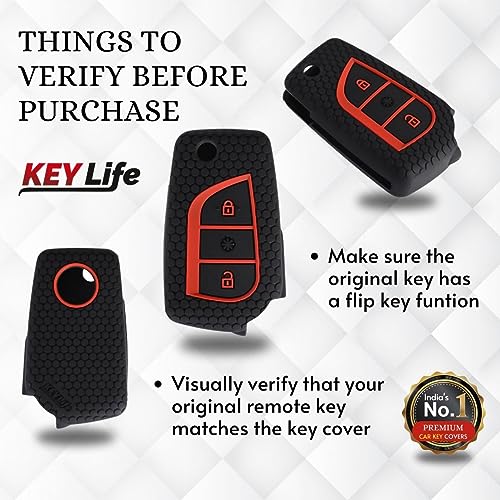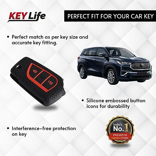 Introducing the KeyLife Silicone Key Cover, meticulously designed to perfectly fit the flip keys of the Innova Crysta, Corolla Altis, and Innova Hycross models. Elevate the protection and style of your valuable keys with our thoughtfully crafted key cover. Crafted from best quality silicone material, our key cover strikes the perfect balance between softness and durability. The silicone acts as a robust shield, safeguarding your keys against scratches, dirt, and everyday wear. We understand the importance of easy access to your key’s buttons and functions. With precisely engineered button cutouts, our key cover ensures you can effortlessly use your Toyota Innova Crysta, Corolla Altis, or Innova Hycross key without removing the cover. Our key cover features a sleek design that complements the aesthetic of your Toyota vehicle. It’s a subtle yet impactful addition that elevates your key’s appearance. Fitting the key cover is a breeze. The flexible silicone material ensures a hassle-free installation process ? no special tools or expertise needed.