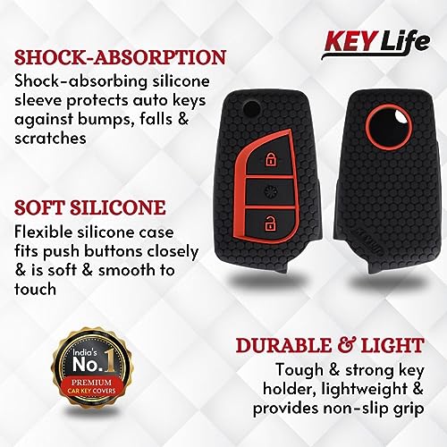 KEYLIFE™ Silicone Key Cover fit for : Innova Crysta, Corolla Altis, Innova Hycross 3 Button flip Key