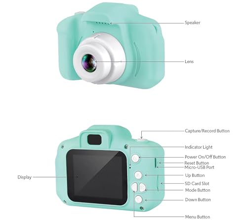 The body has a sleek design, and the grip is more comfortable to protect the child’s tender hands.Our updated digital kids camera comes with more functions, photo capture, video recording, continuous shooting, playback, countdown photo, sticker photo, recording etcThe photo and video mode also have various scene selections and cute photo frame.