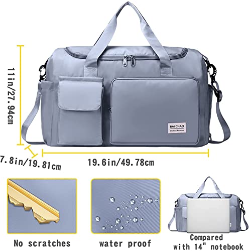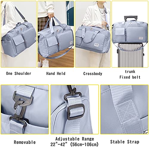 KINDRED Travel Duffel Gym Bag, Large Capacity Portable Foldable Carry Luggage Bag Waterproof Travel Bag Multi Functional Bag Tote Gym Shoe Bag for Swimming, Hiking for Women and Girls. (Blue)