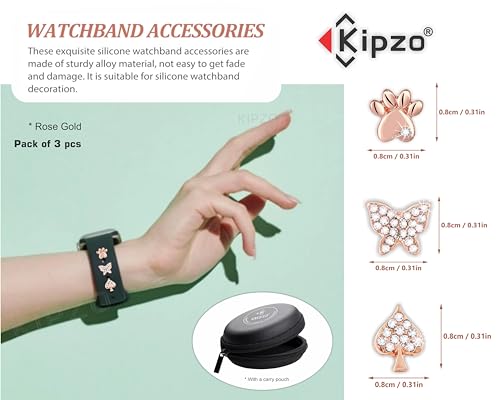 KIPZO® Rosegold metal alloy Decorative watch lucky Charms studs Rings Loops Smartwatch wrist band Jewelry Silicone Bands i-Watch Series 8 7 6 cat paw butterfly leaf Ornament Strap Accessories 3pc