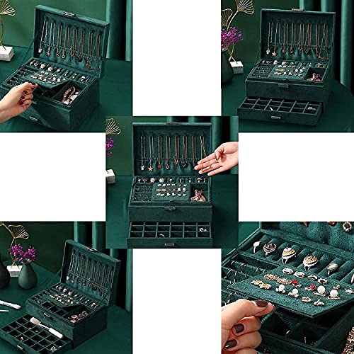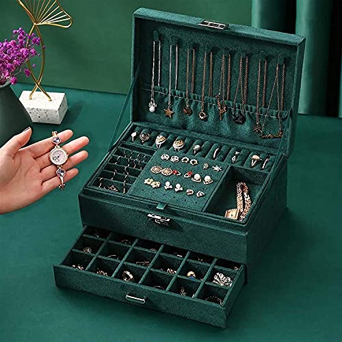 Kixre Jewelry Box Large Capacity 3-Layer With With Drawer Lockable Velvet Storage Jewelry Case Organiser For Rings Earrings Necklace Bracelets ( Green )