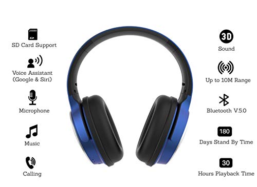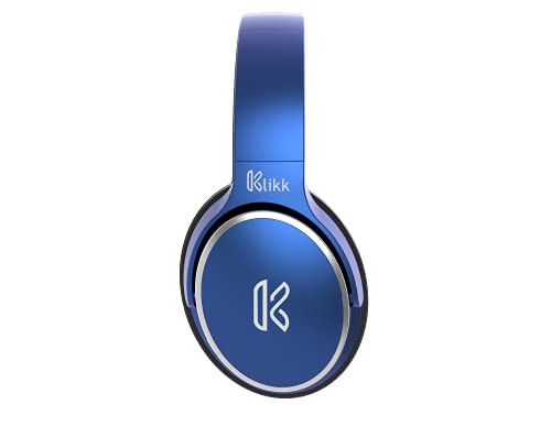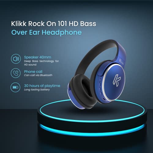 Klikk Rock On 101 Bluetooth Wireless Over Ear Headphones with Mic, 30 Hours Playback, AUX & SD Card & Voice Assistant Support with Foldable & Rotatable Compact Design (Blue)