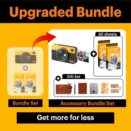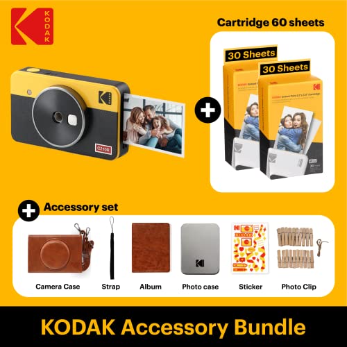 KODAK Mini Shot 2 Retro 4PASS 2-in-1 Instant Camera and Photo Printer (2.1×3.4 inches) + 68 Sheets Gift Bundle, Yellow