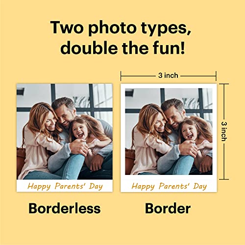 Two Photo Types: It is possible to print both bordered and borderless pictures with the Kodak Mini Shot 3 Retro polaroid camera. With this instant camera, you can create lasting memories by writing down your memories in the border type. You can print the borderless type of photo if you want to have them in a larger size.