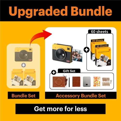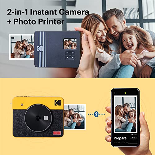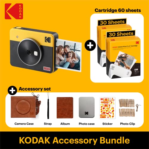 KODAK Mini Shot 3 Retro 4PASS 2-in-1 Instant Camera and Photo Printer (3×3 inches) + 68 Sheets Gift Bundle, Yellow
