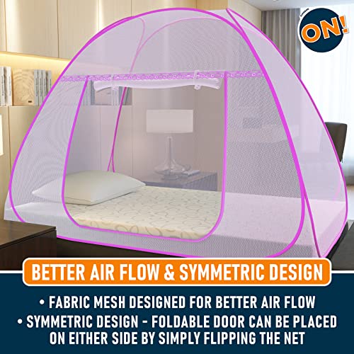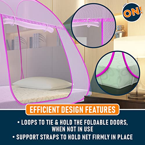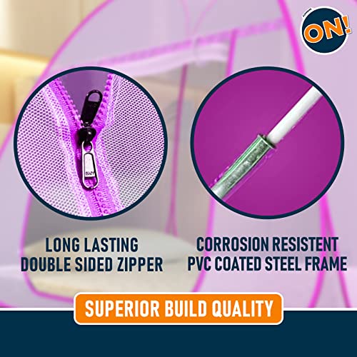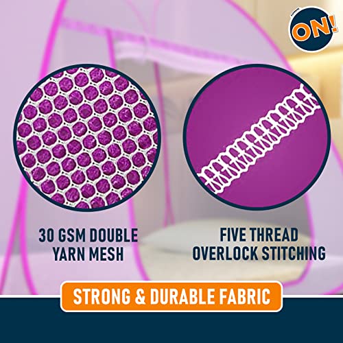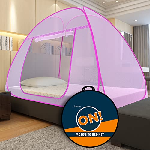 Kolar Supreme On Pink Mosquito Net For Single Bed, 6.5 Feet X 4 Feet Premium Pink Machardani, Strong And Durable, Tent Type, Foldable, Corrosion Resistant [200 Cm X 130 Cm X 140 Cm]