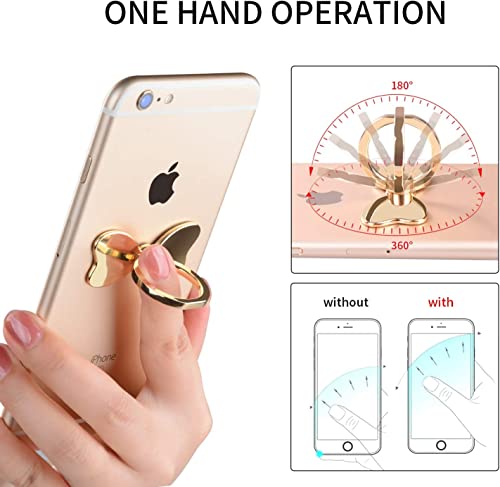 KolorFish Bow Shape Metal Mobile Phone Finger Ring Stability Holder Back Stand Collapsible Hand Grip Kickstand 360 for All Phones (Gold)