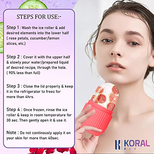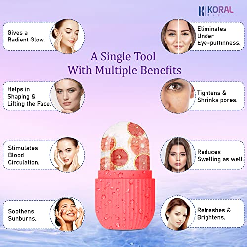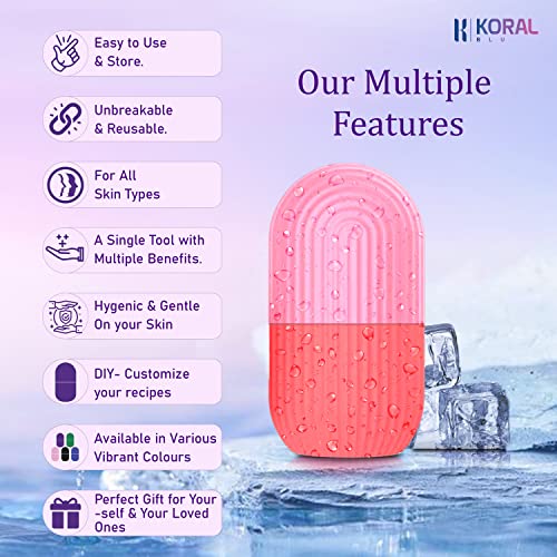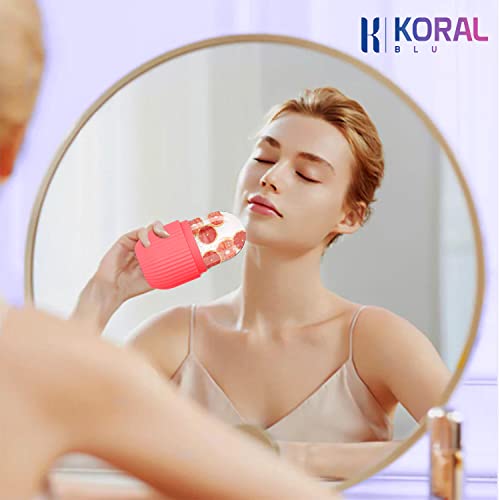 KORAL BLU Ice Roller for Face Eyes to Brighten & Enhance Glow | Unbreakable, Reusable | Facial Beauty Massager Tool | Women Skin Care Treatment to Tighten & Tone Skin (PINK)