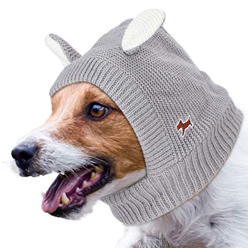 KTM Healthcare® Dog Ear Muff, Pet Warm Ears Cover Knitted Cotton Cute for Pets Dogs Cats for Dogs of 15‑25 Kg/33.1‑55.1lb(Grey)