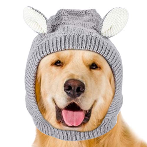 Dog Ear Muff, Pet Warm Ears Cover Knitted Cotton Cute for Pets Dogs Cats for Dogs of 15‑25 Kg/33.1‑55.1lb(Grey)