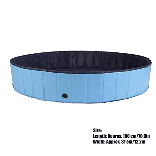 Specification: Item Type: Foldable Dog Pool Material: PVC Size: Approx. 180x31cm / 70.9×12.2in Package List: 1 x Foldable Dog Pool1 x English Manual Note: 1. Prohibit contact with objects or use on uneven surfaces. Stop pet bites in time, polishing pet nails before use is recommended 2. To keep our products happy for your dog for a long time, please take care to prevent your dog from biting. (If your dog likes to take a bite, we recommend wearing a muzzle.)3. Please allow 1‑2cm/0.4‑0.8in error for manual measurement
