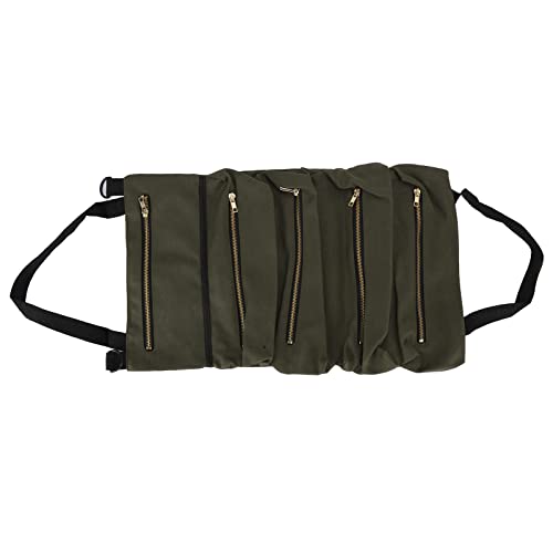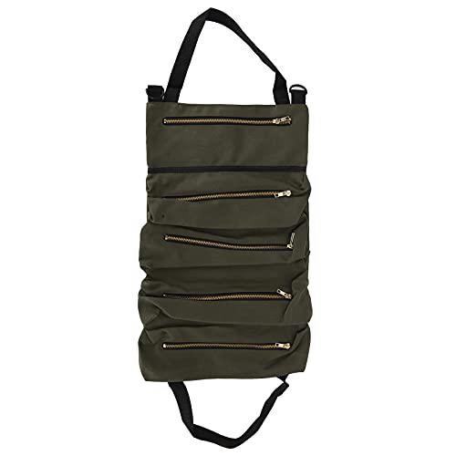 Feature: 1. It allows tangled tools to be neatly arranged in this roll up bag, you can find the tools easily when needed. 2. It has five spacious zippered pockets, just roll it up and fasten it with two adjustable compression straps. 3. You can use it to easily unfold, roll up the kit, or hanging it on a metal grommet or handle. 4. There is no need to browse through a messy toolbox to get the tools you need. 5. This tools storage bag is convenient for easy access in the car, workshop, garage or work site. Specification: Item Type:Tool Storage Bag Weight: Approx. 293g / 10.3oz Material:Canvas Color: Army Green Package List: 1 x Storage Bag
