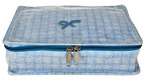 Kuber Industries Check Design Laminated PVC Jewellery Box/Organizer with 4 Transparent Pouch & 1 Bangle/Watch Rod-Pack of 2 (Blue)-HS_38_LUGGAGE21276