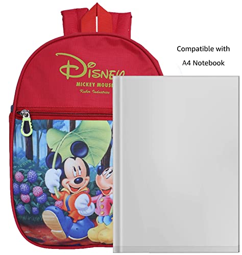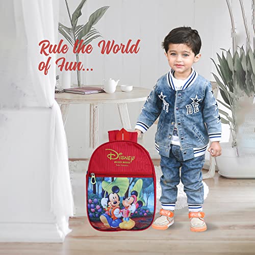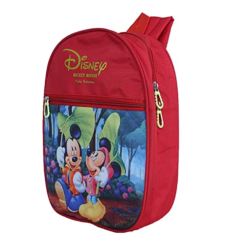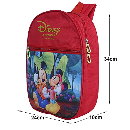 Kuber Industries Disney Mickey & Minnie School Bag|2 Compartment Rexine School Bagpack|School Bag for Kids|School Bags for Girls with Zipper Closure|Small Size (Red)