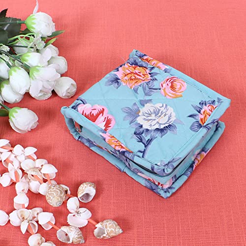 Kuber Industries Jewellery Kit | Cotton Green Flower Cosmetic Kit | Travel 5 Pouch Jewellery Box | Makeup Kit for Watches | Bracelets | Earring | Small Size| Green
