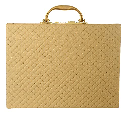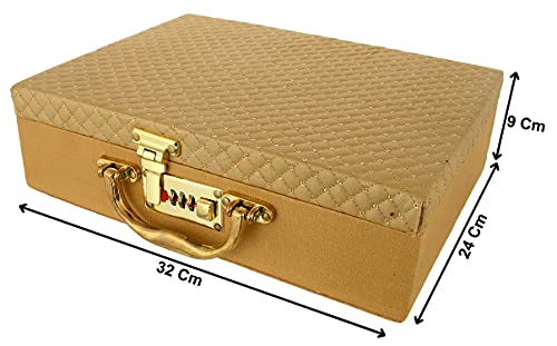 Kuber Industries Soft Leather Bracelet Jewellery Box with 3 Removable Rolls-Holder Stores Bracelets,Bangles & Watches-Organizer with Lock System (Gold), Rod of 3 (HS_37_LUGGAGE020320)
