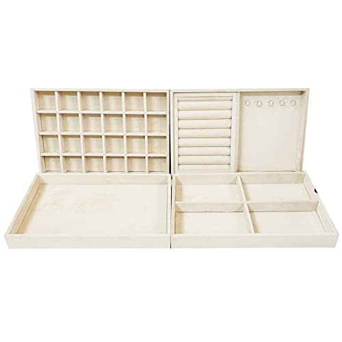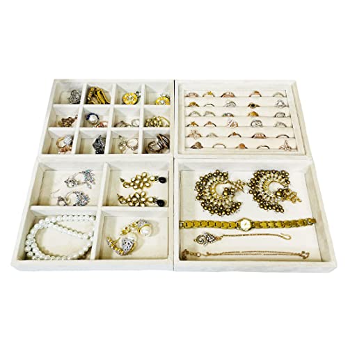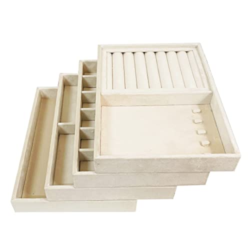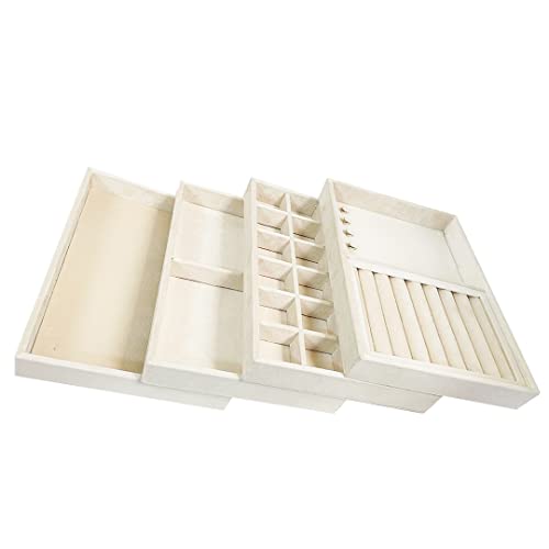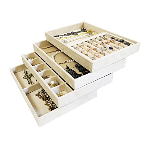 La Trove Set of 4 Jewelry Stackable Trays for Drawers, Earring Necklace Rings Jewelry Storage, Organizer for Women,Soft Felt Interior (Cream,30 x 20 x 3.5cm, Velvet)