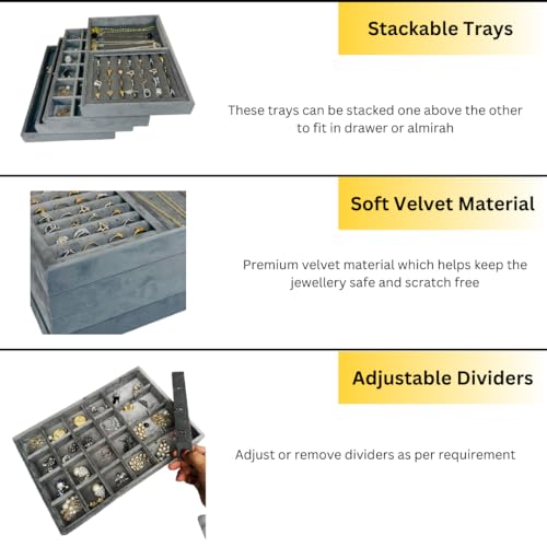 This set includes four trays, each measuring 30x20x3.5cm, offering ample space to accommodate all your earrings, necklaces, rings, and other jewelry accessories.