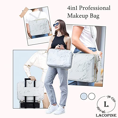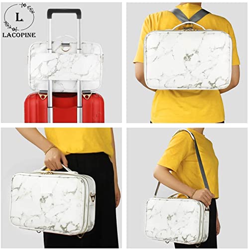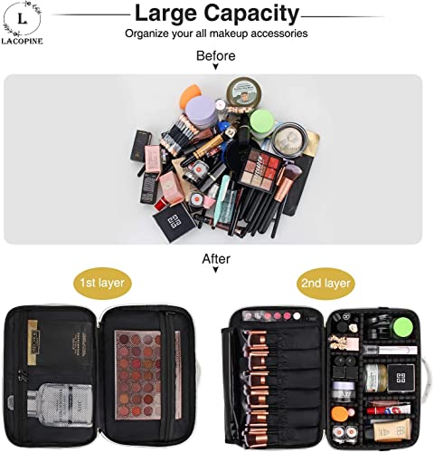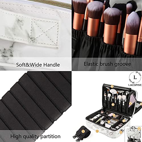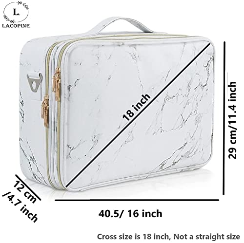 LACOPINE 28cms Makeup Organizer Cosmetic Artist Storage Case with Adjustable Dividers, Elastic Makeup Brush Slots and Shoulder Strap for Women (18 INCH (2 LAYER)_Travel Makeup Bag_White)
