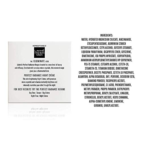 Lakme Absolute Perfect Radiance Brightening Night Cream 50 g, Daily Repair Face Moisturizer for Illuminated, Glowing Skin -With Glycerin & Niacinamide